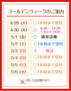 ゴールデンウィーク期間中の営業についてお知らせいたします。